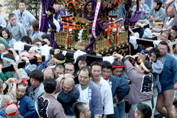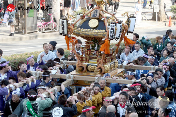 ①萬歳會一 ②萬歳會二 ③萬歳會三 ④萬歳會四 ⑤いずみ会 ⑥相州睦 ⑦鳳和會 ⑧新宿ひぐらし ⑨千葉県神輿保存連盟 ⑩極神連合 ⑪鯱睦連合 ⑫東京共和睦 ⑬川崎道祖神 ⑭居木神社 <(元禄弥山車)