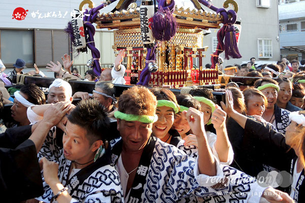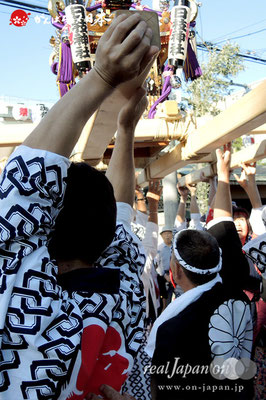 ◎放り上げ:そして最後に神輿を上に高く放り投げて受ける。